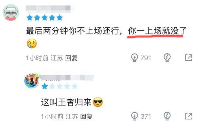 不少球迷质疑雷迪克的这次换人,认为他不该换下八村垒;还有球迷批评詹姆斯毫无担当,作为球队核心,在关键时刻他应该主动进攻,而不是甩锅推责;还有人直言:你一上场就没了。